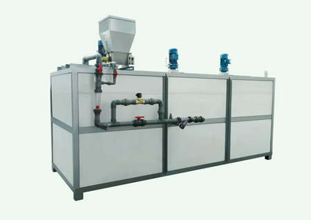 一體化PAM自動(dòng)制備投加裝置完全滿足工藝要求。該裝置設(shè)定后可實(shí)現(xiàn)高分子絮凝劑干粉的自動(dòng)制備,定量連續(xù)投加。包括定量投加裝置、干粉浸潤(rùn)裝置,